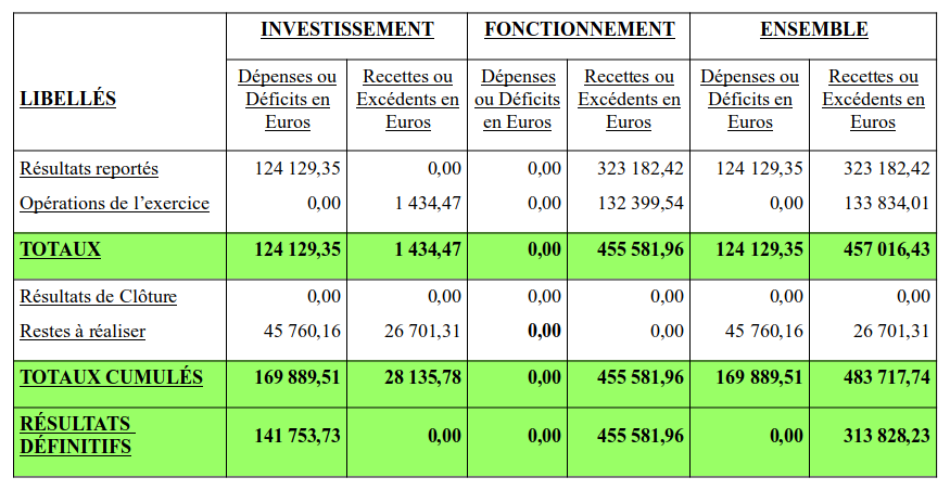 • lui donne acte de la présentation faite du compte administratif, lequel peut se résumer ainsi :