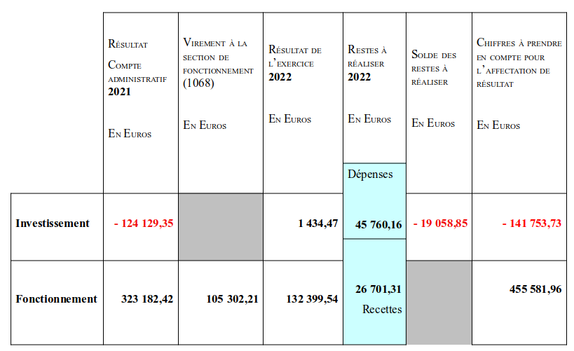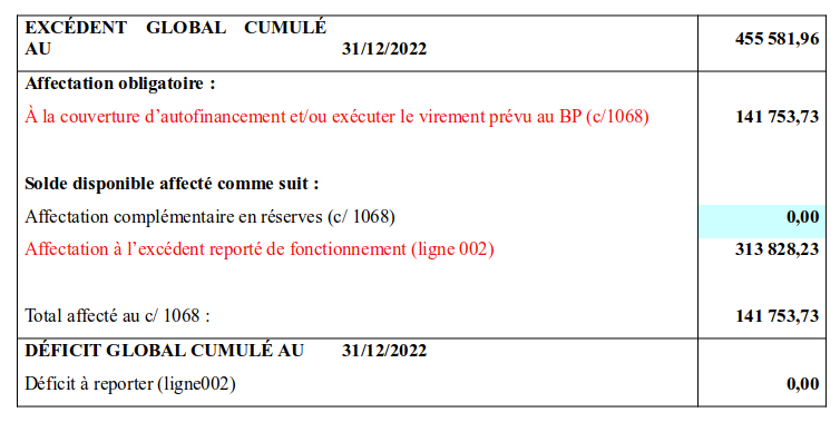 Statuant sur l’affectation du résultat de fonctionnement 2022,